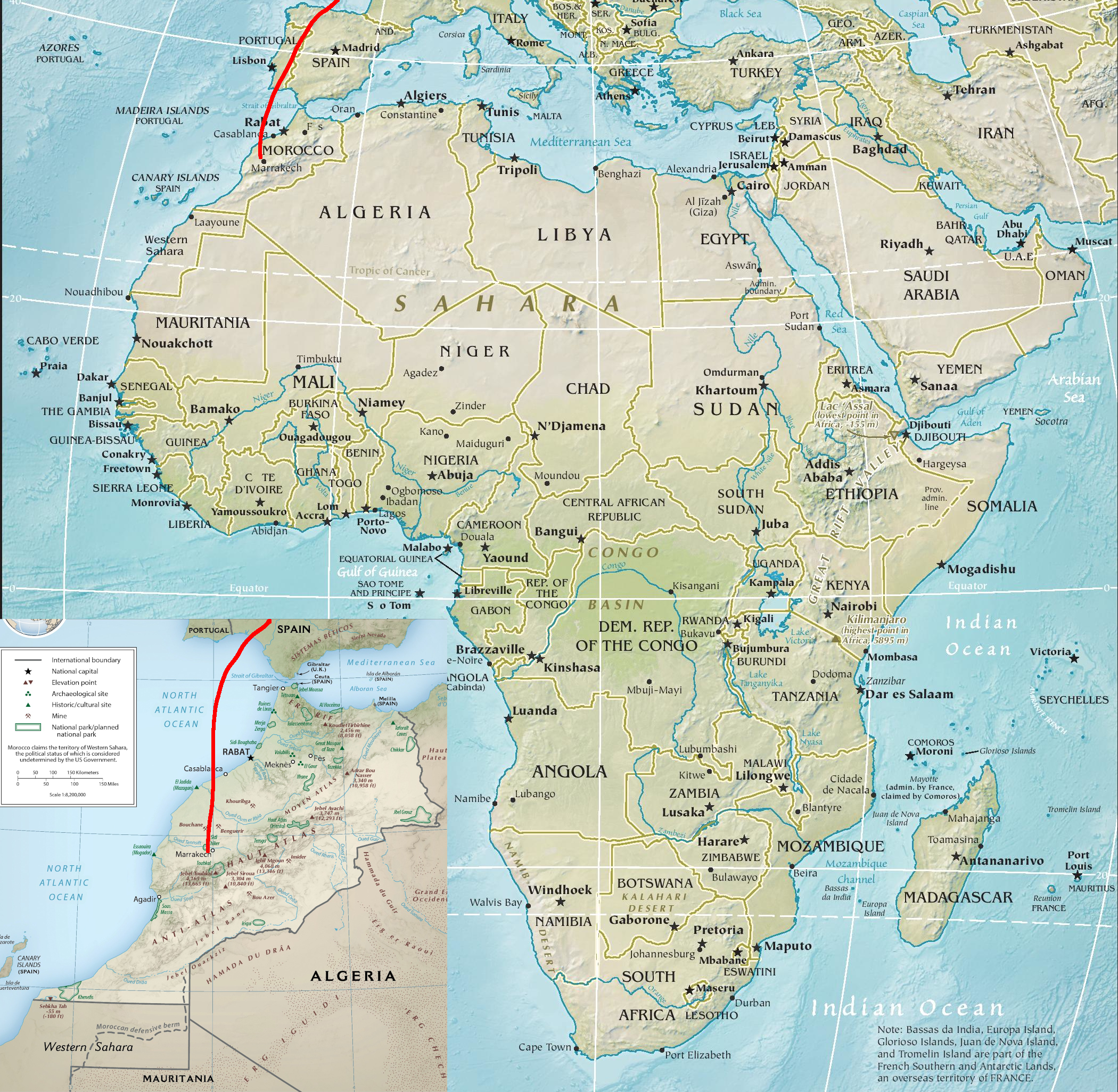Saying goodbye to my parents at the airport involves my mom eating Moroccan meatballs in honor of our trip, followed by lots of hugs and waves and handkisses. Thankfully the flight to Marrakesh is easy enough. When we fly over Casablanca, we can even make out Casablanca’s famous Hassan II mosque, with its 210 meter tall minaret and capacity for 105,000 worshippers. My mom’s awesome zoom camera works as a handy binoculars from 10km altitude.