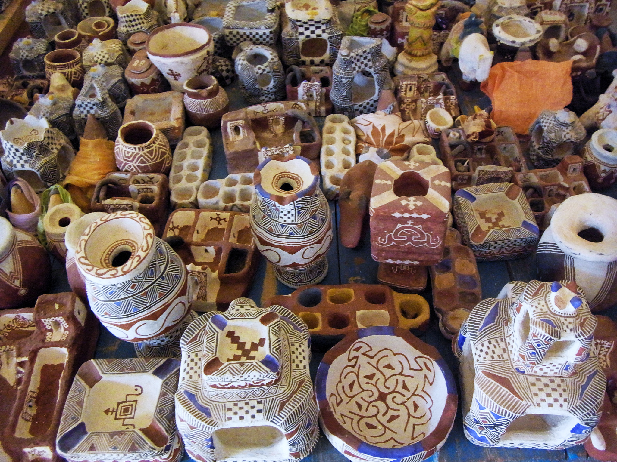 Thankfully, a women’s co-operation making clay art is a more pleasant stop on the tour. The clay objects are pretty, and if the auberge and the guide hadn’t demanded such high prices, I would’ve loved to buy some of their wares. A traditional game based on a clay board, in particular, looks very enticing. As it is, my main take-away is in the form of photos, as the interior is stunningly decorated.
