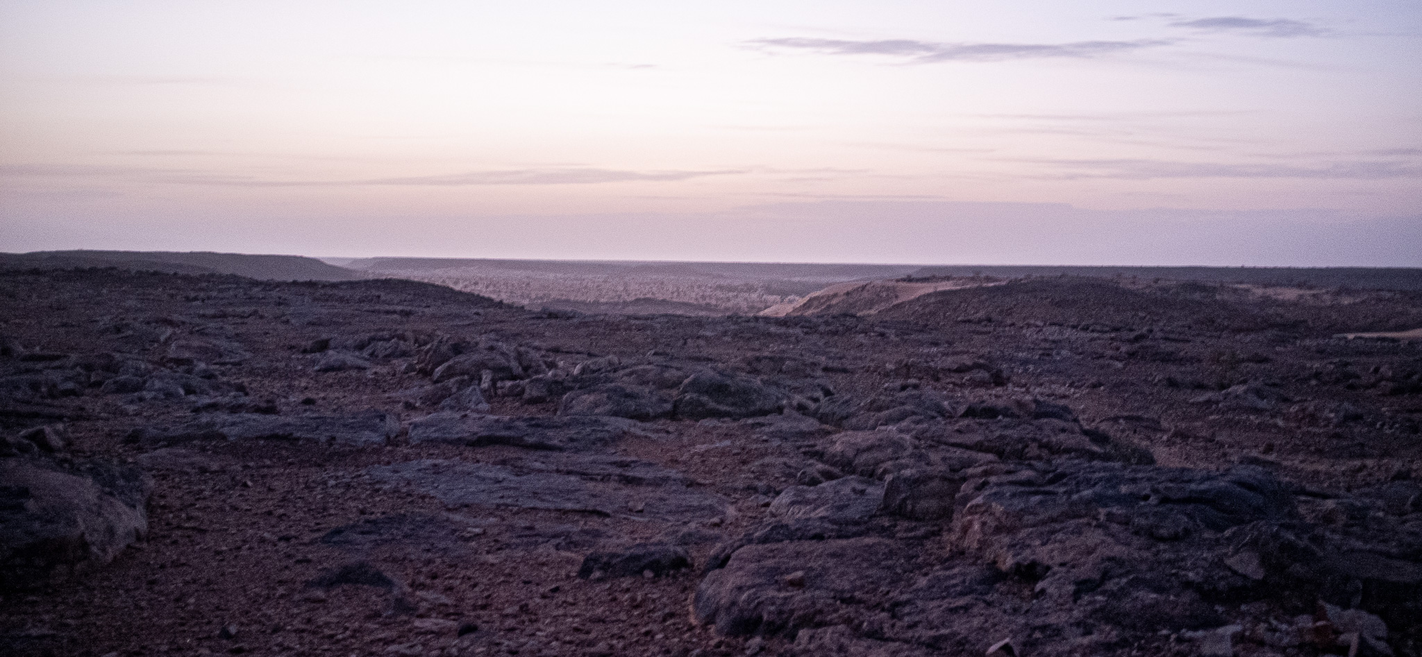 By now the guide has left, but to be honest, the librarian has been more informative anyway. After quite some time chatting, I make my way back to the Auberge. The midday heat is stifling and I don’t do much of anything until early evening. I make a solo round through the old town; some kids do a little dance when they see me, and are beyond delighted when I copy them. Just after sunset I climb the hill that separates Oualata from the Aoukar depression. The deep purple rocks of the hill and the salmon colored sand are beautiful in the twilight, and the cooling air is just what I needed. I hurry back down to make it to the Auberge before the old town descends into pitch black darkness, and because I’m getting quite hungry. Unfortunately dinner at the Auberge is again a disappointment given the price I’m paying. Still, Oualata the town has not disappointed me, with the beauty of the buildings, the desert around it, and the friendliness of the locals (if not the guide or the police). If the way there weren’t so massively exhausting and potentially dangerous, it’d be a very easy recommendation indeed. As it is, I still have to make my way back from the end of the world, but that’s a story for another time…