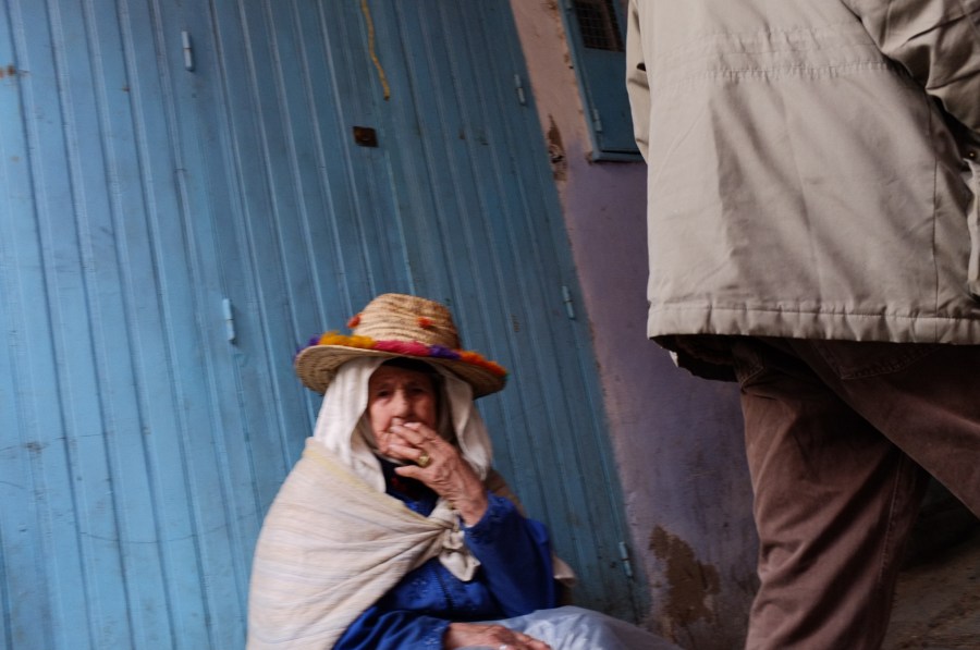 Afterwards, it’s time to explore the medina; unfortunately, it’s raining, and it does so all day long. As a Dutchman I can’t let that discourage me, so I spend a few hours wandering around. The day is livened up by guys and girls from the nearby large cities (Tanger and Tetouan) walking through the streets in small parades, beating drums and chanting and having a good time. The local men are tucked away in their jellaba’s (a sort of poncho made of wool), and the women underneath their headscarves or umbrellas, so it’s not an ideal day for people watching.